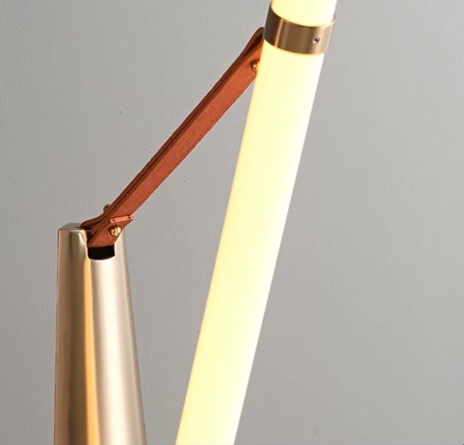 يأتي هذا المصباح الأرضي بتصميم عصري أنيق، الضوء البني ينعكس بشكل ذهبي عند تشغيل الإضاءة يخلق تأثيراً دافئاً وجذاباً في المساحة، مما يضفي لمسة دافئة وساحرة على الغرفة. القاعدة والساق المعدنيتان المتينتان تدعمان الضوء المستطيل البسيط، والذي يعكس أناقة وبساطة في آن واحد، ليكمل أجواء الفخامة في المنازل الراقية والمكاتب الحديثة.